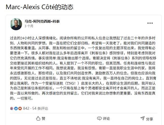 游戏新闻报道/去年10月,育碧曾发布公告,宣布《刺客信条》系列负责人马克-亚历克西斯·科特(Marc-Alexis Côté)离职,措辞体面,称其将“探索新的机会”。没想到,短短几个月后,这场离职竟演变成一场公开对簿公堂的纠纷。根据加拿大广播公司近日披露,科特已正式对育碧提起诉讼,索赔超过130万加元(折合人民币超过650万元),核心指控是“推定解雇”。