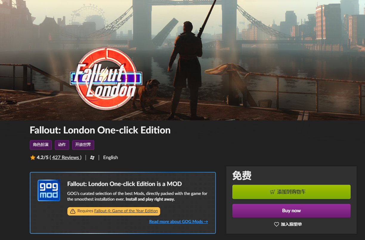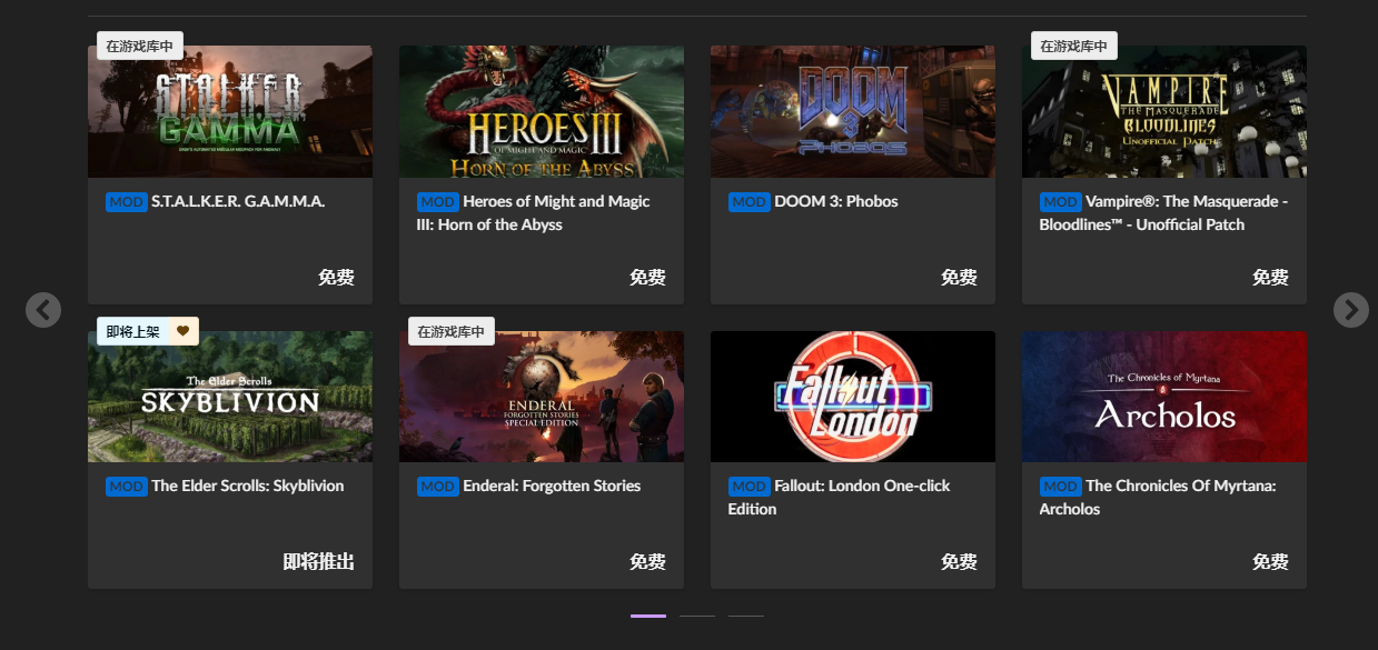 GOG还有一个新的功能GOG MODS,就是提供大型MOD包的一键式分发服务。只要购买了对应要求的游戏,你就可以使用GOG的分发快速方便下载安装很多比较有名的大型MOD包,这些MOD包几乎会提供全新游戏的体验。
