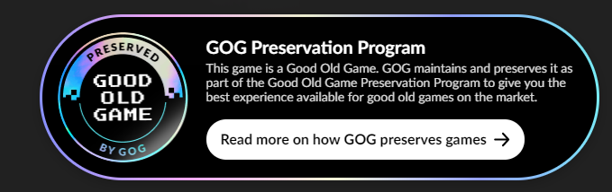 这次回去,发现GOG开始重新深化自己的“老游戏平台”的特质。首先是GOG Preservation Program: