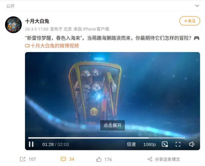 截至目前,@十月大白兔仅以这支短片完成了“立项级”对外沟通:玩法类型、平台、发行方式与时间表仍未公布。