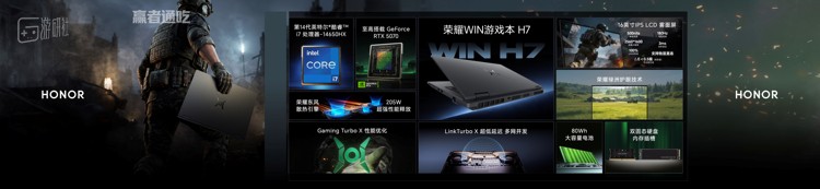 荣耀WIN系列自发布以来,始终致力于成长为一个完整的电竞生态品牌。本次发布会除了旗舰机型H9,还推出H7机型,形成覆盖不同档位的产品矩阵。荣耀WIN游戏本H7拥有档位最强的205W性能释放,搭载至高RTX 5070显卡、英特尔I7 14650HX处理器,配备荣耀东风散热引擎的旗舰级三风扇内吹方案,确保性能稳定输出;屏幕方面,其采用2560*1600分辨率电竞屏,搭配180Hz电竞高刷与3ms极速响应,兼顾电竞体验与视觉效果。