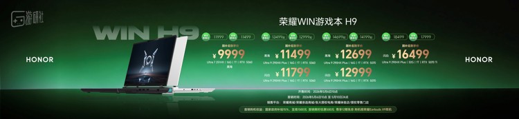 荣耀WIN游戏本H9将于5月6日10:00开启首销,国补价9999元起;荣耀WIN游戏本H7现已开售,国补价7819.15元起。销售渠道覆盖荣耀商城、授权电商平台、荣耀体验店及授权零售门店,首销期可享多重优惠福利。