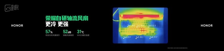 除此之外,荣耀还融入三角蝉翼长短鳍片、三矩形矢量热管、键盘风道设计、超百扇叶静音风扇等散热设计,打造当前游戏本行业最强的散热方案,助力玩家猛攻到底。