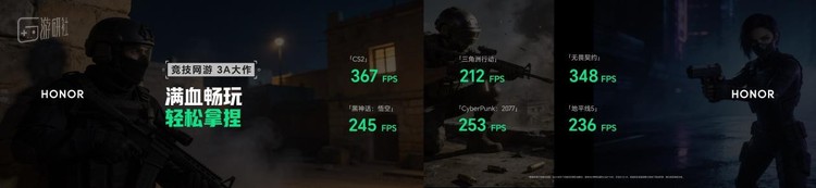 荣耀WIN游戏本H9凭借全新Gaming Turbo X技术,实现全域性能调优、整机动态超频,在游戏体验上全方位升级,为玩家带来最强“打洲本”体验。在开启Gaming Turbo X技术后,荣耀WIN游戏本H9可实现《三角洲行动》212 FPS,《黑神话·悟空》245 FPS,《赛博朋克2077》253 FPS。