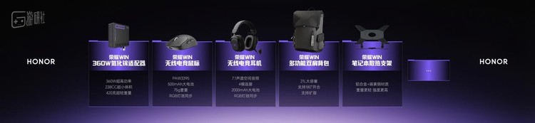 配套生态方面,荣耀同步推出荣耀WIN 360W氮化镓适配器,重量仅420g,是业界最便携、重量最轻的同功率适配器,还同时兼容其他品牌的游戏本。同时,荣耀WIN无线电竞鼠标、荣耀WIN无线电竞耳机、荣耀WIN多功能双肩背包、荣耀WIN笔记本散热支架等全场景产品同步亮相,打造一站式电竞装备解决方案。
