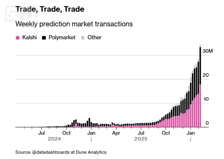 2024年底,Kalshi在一次关键的诉讼中胜诉,法院判定“政治事件合约”不构成赌博,监管大门就此打开。到了2025年,两家平台合计处理了大约440亿美元的成交量,而两年前这个数字还只有几亿。