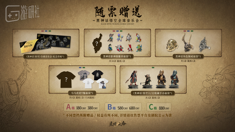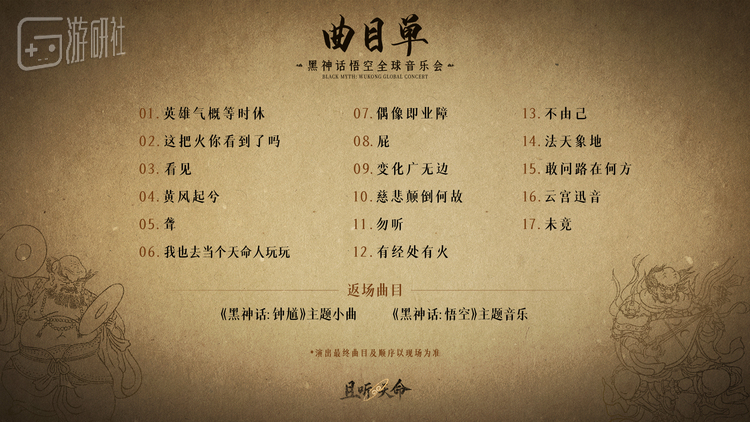 曲目单更新——2026年巡演相比此前的音乐会曲目进行了一定改动,《云宫迅音》和《敢问路在何方》的黑神话改编版将首次加入曲目单。此外,黑神话多首游戏内歌曲的原唱也将加入全球巡演,带来游戏中无二的原唱体验。