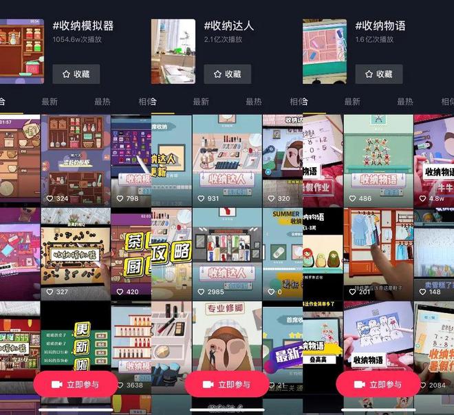 也许在一些核心玩家的眼中,收纳类小游戏是莫名其妙甚至是无聊的。但在更广泛的蓝海玩家中,就是有它的受众,而且数量还不少。我们可以看到,榜上有名的几款收纳小游戏在抖音话题甚至有着破亿的播放量。