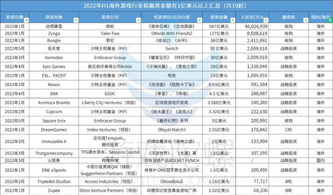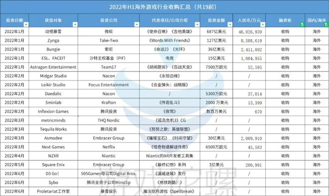 33亿元VS 6631亿元,游戏投资机会尽在海外?丨2022年半年复盘