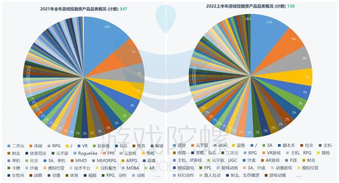 在游戏投融资产品品类上,去年二次元、SLG、解谜、Roguelike资本关注度比较高的品类。但今年上半年情况却大为不同。链游、元宇宙、休闲游戏、3A游戏才是资本关注的焦点。