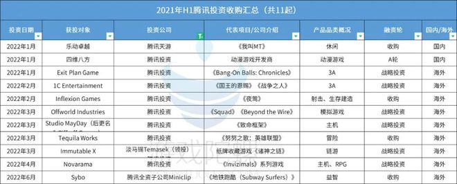 首先是腾讯游戏,虽然仍以11起在今年H1的游戏投融资市场领跑,但已没有去年“三天一投”的速度。战投的侧重点也从国内移至海外。