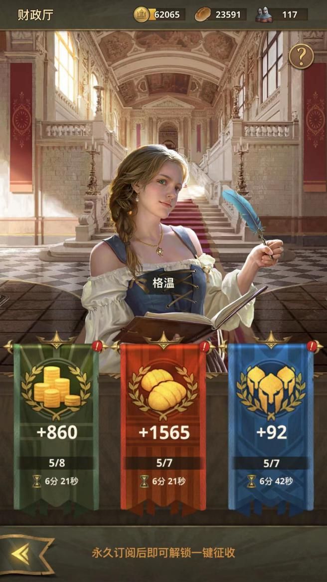 游戏遵循了获取资源到养成这一核心逻辑。基础资源分别为金钱,食物以及兵力,可用于养成角色或训练兵种时使用。而获取这三大资源的方式也很简单,“财政厅”可以定时进行征收,单机即可获取资源。