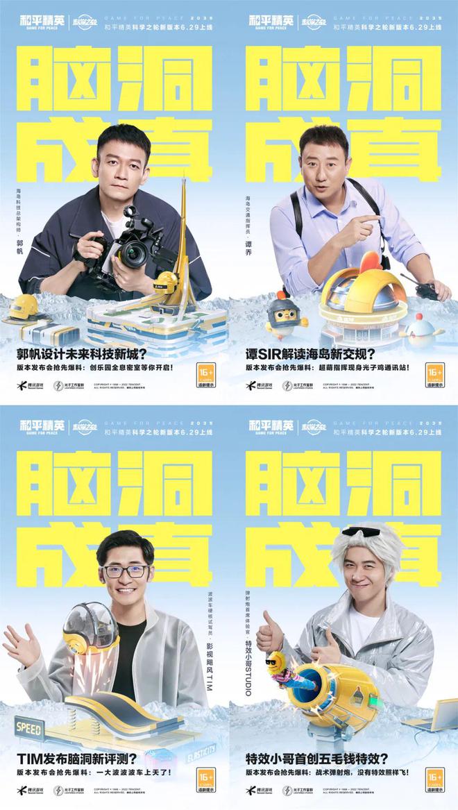 具体而言,该次发布会由著名科幻电影导演郭帆担任海岛科技总架构师,领衔众科技达人,包括科技测评博主影视飓风Tim,《谭谈交通》主持人谭乔,脑洞科幻Up主@特效小哥 ,化身不同角色,搭配加入科技感十足的动画特效,以第一人称探寻新版本脑洞大开的玩法。