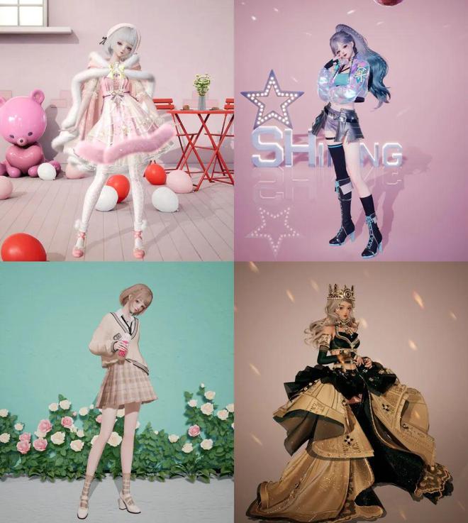 接着是换装的部分。《以闪亮之名》中的服装风格非常多元,从中式、哥特、洛丽塔,到女团风、辣妹风、学院风、在逃公主风等等,玩家可以通过自我投射,让自己穿上现实中未曾尝试过的风格服装,呈现出更多样或独特的面貌,成为不被标签定义的百变女王。