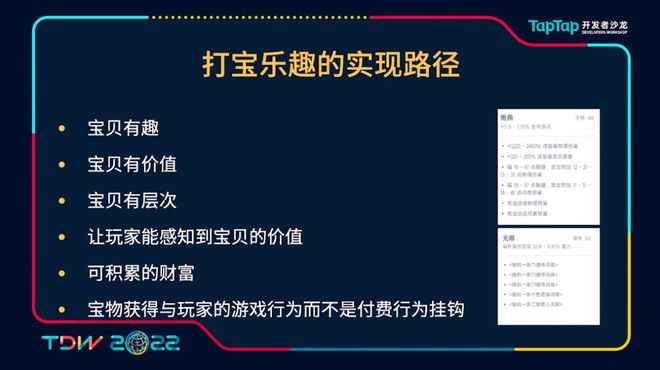 同时的话就是我们要保证这些宝贝其实有价值,我们可以通过控制它的一个效果,也控制它掉率来保证它的一个稀缺性。