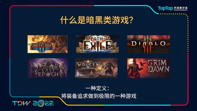 前面也反复在提到暗黑类游戏,什么是一款暗黑类游戏?其实整个业界可能没有一个统一的普遍的标准,在我们看来我对这个游戏的一个定义是将一个装备做到极致的一种游戏。在这个游戏品类里面它会讲究将装备做得极其的丰富,极其的独特,而给你带来各种体验的变化,你可以根据这些装备搭配出各种各样的流派,让玩家在游戏中就是不断的去追求极致的装备,追求更加极致的BD。