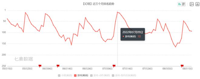 而从《幻塔》的推出时间线也可以看到,今年上半年正是其最佳收益期。七麦数据显示,《幻塔》游戏近3个月App Store游戏畅销榜最高排名Top9,虽然排名较Q1有所下滑,但总体还保持在TOP60以内。
