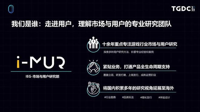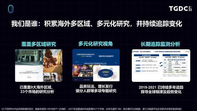 3、全球视野。依托国内研究视角丰富的积累,包括行业趋势追踪,品类玩法下探,增长发行策略,体验设计打磨等,延展到海外视角,持续扩大研究广度和宽度;