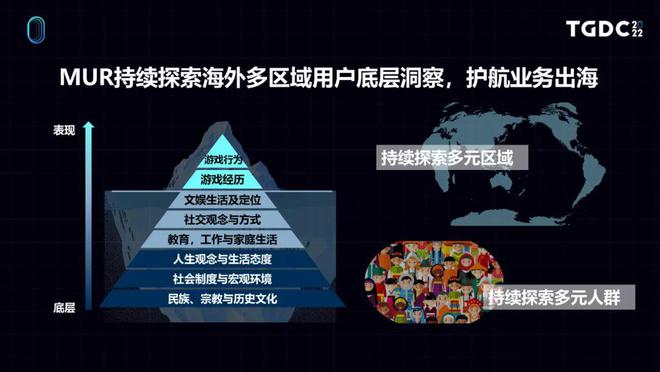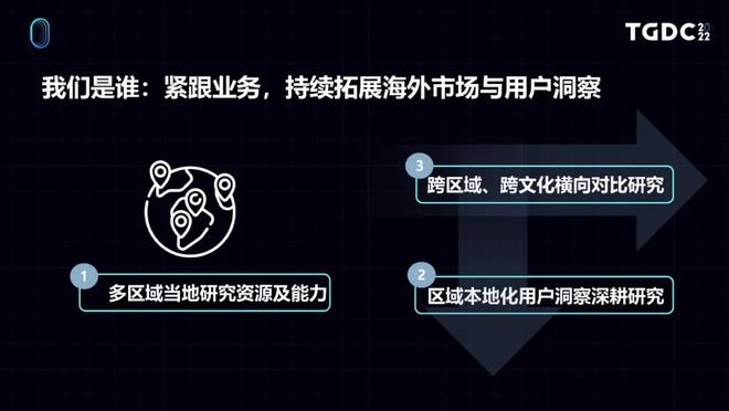 我们在开展海外研究的时候注重三个方向:第一,注重在海外多区域建设当地的研究资源及能力,为我们搭建好的基础;其次,注重区域本地化洞察深耕,围绕用户的游戏内外态度和行为特点开展相关的研究;再者,我们比较注重跨区域和跨文化的横向对比研究,这样可以分析和提炼更多的规律性,为业务出海提供更前置的输入判断。