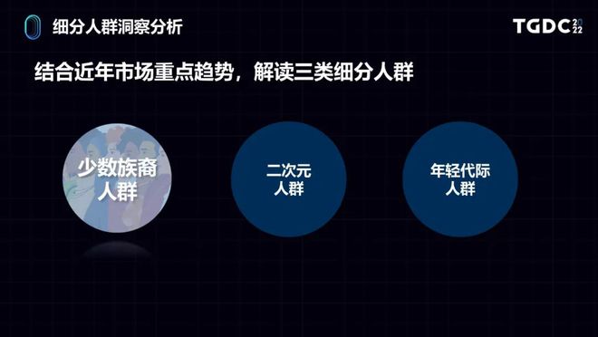 以上就是我们今天想和大家分享的三类细分人群,其中少数族裔群体对重度手游、竞技玩法有更多值得关注的方向,二次元群体与内容型产品和文化出海息息相关,年轻代际则给我们带来了平台型玩法和融媒趋势相关启示。
