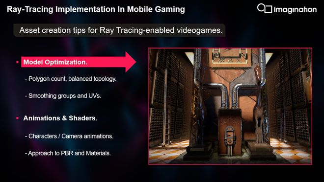 Alekos Caporali是Imagination Technologies公司演示团队的图形技术美工专家,他向大家展示了他们在移动端实现光线追踪的巨大进展,同时也就如何创建针对游戏中光线追踪的资源提出了自己的建议。