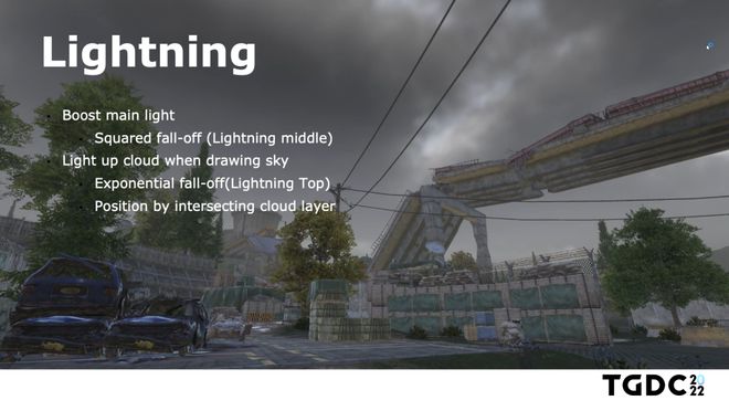同样是对于更极致精细游戏场景的追求,腾讯互娱魔方工作室群引擎中心技术专家陈家铭以手游《暗区突围》为例,分享了游戏中的动态天气渲染技术。与光线追踪类似,这些原本应用于主机/PC的技术要在移动端实现面临着不小的困难,《暗区突围》的成功解决了一系列的技术难题,为同行们树立了不小的信心。