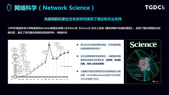 在由腾讯游戏学堂举办的TGDC2022腾讯游戏开发者大会上,腾讯互娱光子S工作室总经理、《和平精英》项目负责人高丽娜以“游戏世界中的玩家网络”为题,分享了运用“网络科学”深入研究游戏群体生态的探索成果。这套通过系统论的视角,来对游戏用户生态网络建立评估体系以指导游戏运营的思维,对许多游戏品类颇有值得借鉴之处。