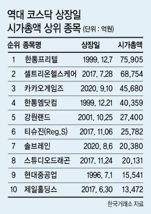 随着股价的飞涨,Kakao Games的市值也达到236亿元。据韩国交易所统计,这相当于历届KOSDAQ上市日中排名第三的规模,仅次于1999年12月上市的Hantong Freetel和2017年7月上市的Celltrion Healthcare。