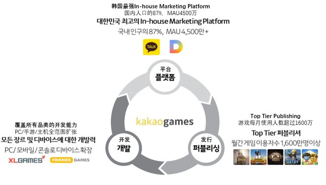 不难看出,Kakao Games与腾讯游戏业务在发展模式上存在高度的相似性。借助头部社交平台的影响力,Kakao Games在韩国成为了游戏发行的领头羊,并反哺Kakao Talk带来更大的用户量增长,形成一个良性循环。