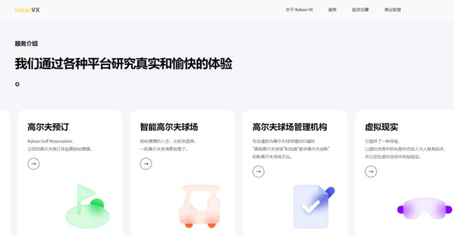 子公司Kakao VX在体育方面已成功将高尔夫运动与虚拟现实相结合。代表理事南宫勋以任天堂为例表示愿景:“如果说任天堂想让在里面玩游戏的人动起来,那我们就是让在外面跑的人跑得更有趣。”现在他们又有了新的动作。