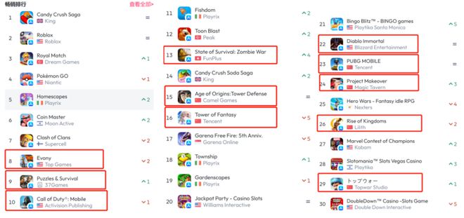 (注:《Evony》《Call of Duty: Mobile》《Diablo Immortal》归为国产游戏》)
