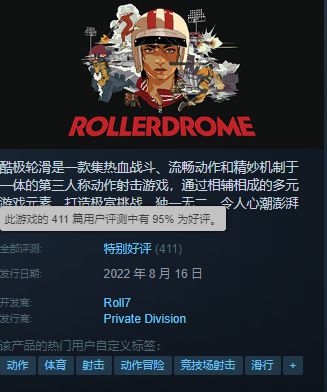 8月16日,Roll7团队开发的一款第三人称动作射击游戏《酷极轮滑》上线Steam和PS4/PS5平台,并在Steam上取得了95%的好评率。