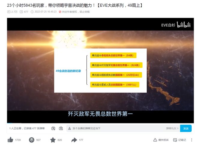 比如2014年国服那场彪炳游戏史册的千人规模战役“49会战”,不仅影响着国服的势力变迁,在整个游戏圈里都引发了不小的震动。可以说这场据称损失超千万的超大规模宇宙战役,让玩家们看到了EVE宇宙的宏大震撼和无限可能。这些浓缩了EVE魅力的知名事件,至今仍有不少玩家津津乐道,传唱着一段段往日的传奇。