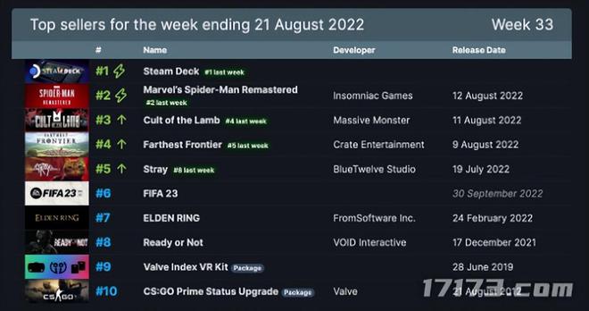 Steam周销量榜:V社掌机12连冠