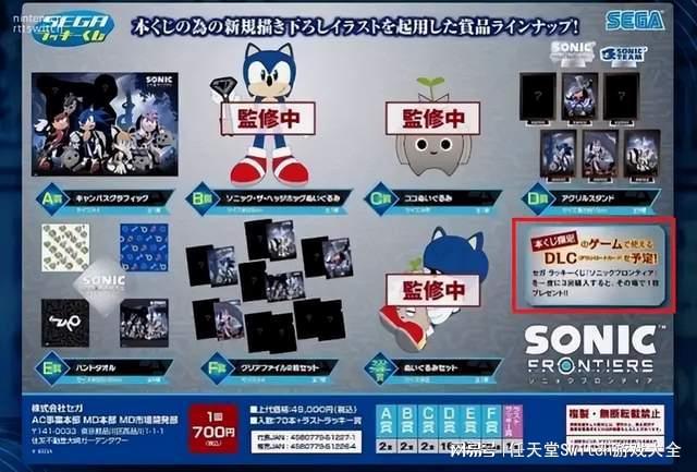 Reddit用户在中国台湾商城Shopee上发现了世嘉的《索尼克未知边境》的“一番赏”,也显示游戏显示在11月15号发售,其中包含《索尼克未知边境》游戏本体和其他周边商品,在宣传图中还显示游戏会有DLC且已在开发中。
