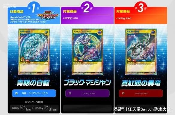 实体版游戏除了早前公布的三张特典卡外。早期实体版卡盒中还附带一张需要刮开的序列号卡。在游戏官网输入之后有机会抽到RD版青眼白龙实体卡,限量1000份。