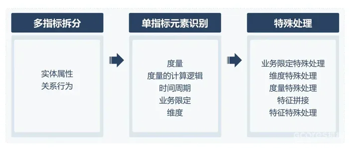 - 要素解析:提取时间周期、度量、度量的计算逻辑、维度和业务限定
