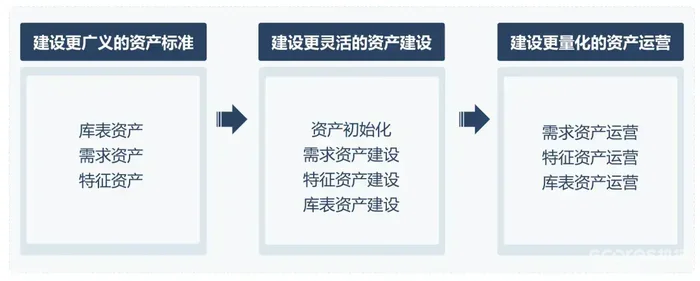 需求资产、特征资产和库表资产三者存在流程递进关系。