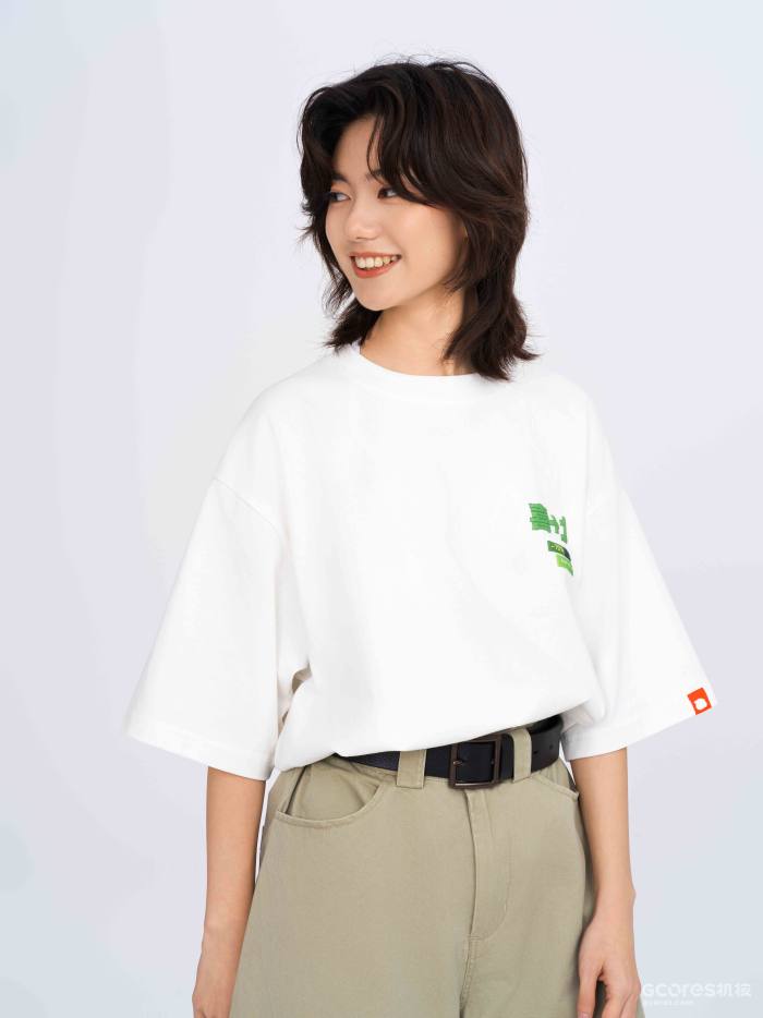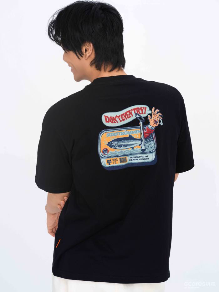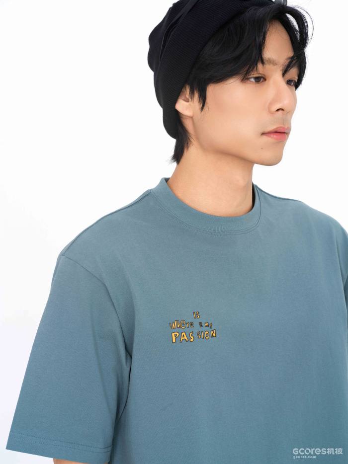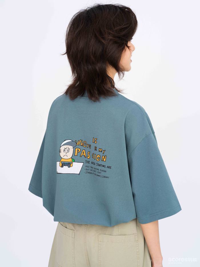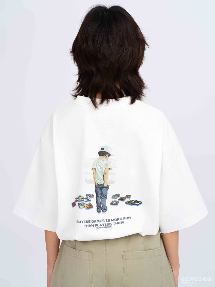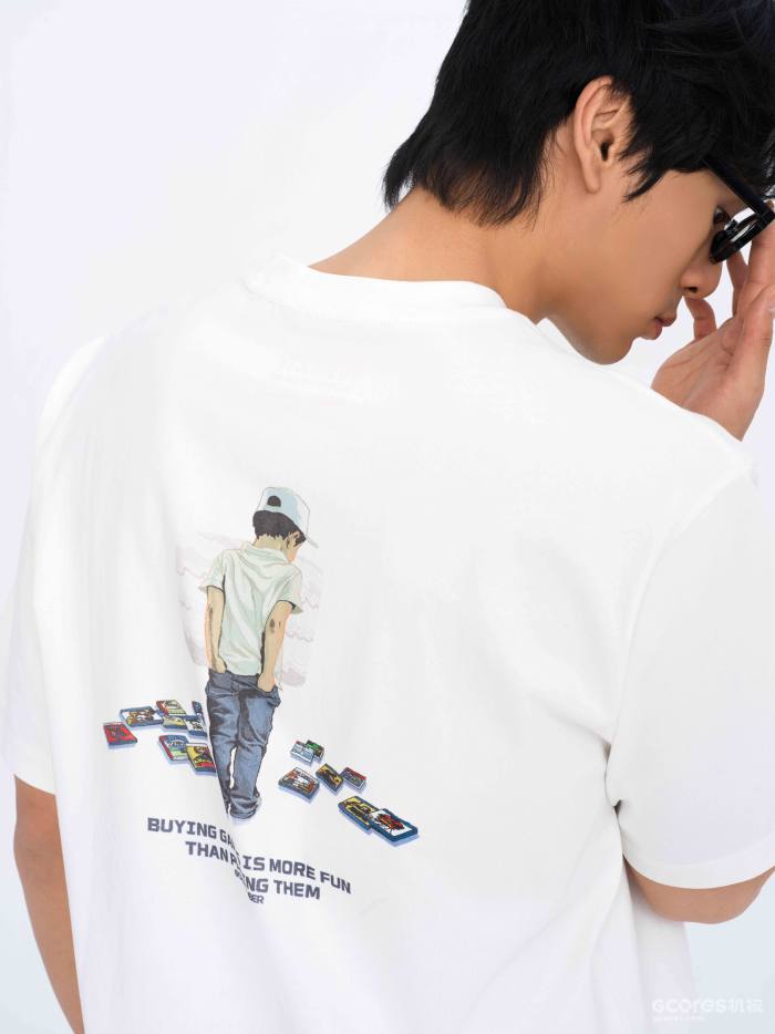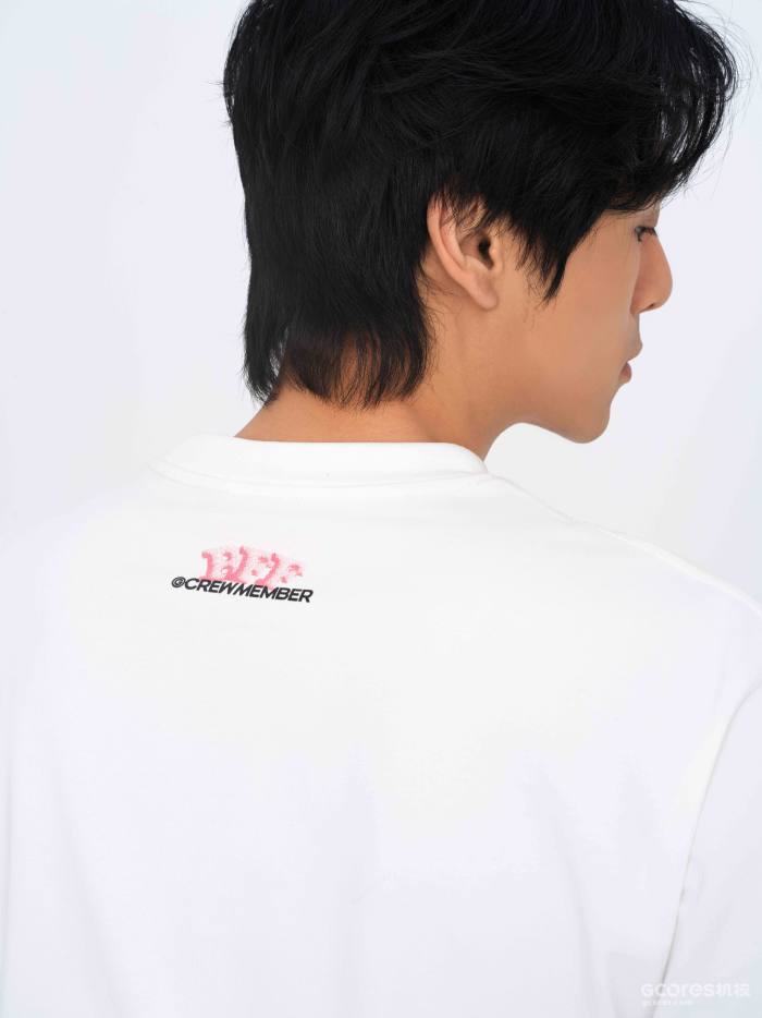 - 后背领口主题印花,不再是平庸的普通印花 T 恤。