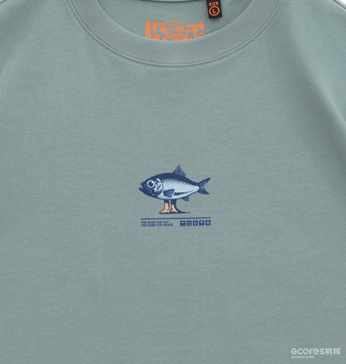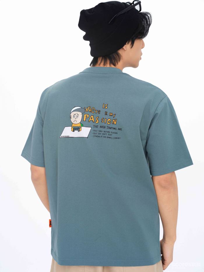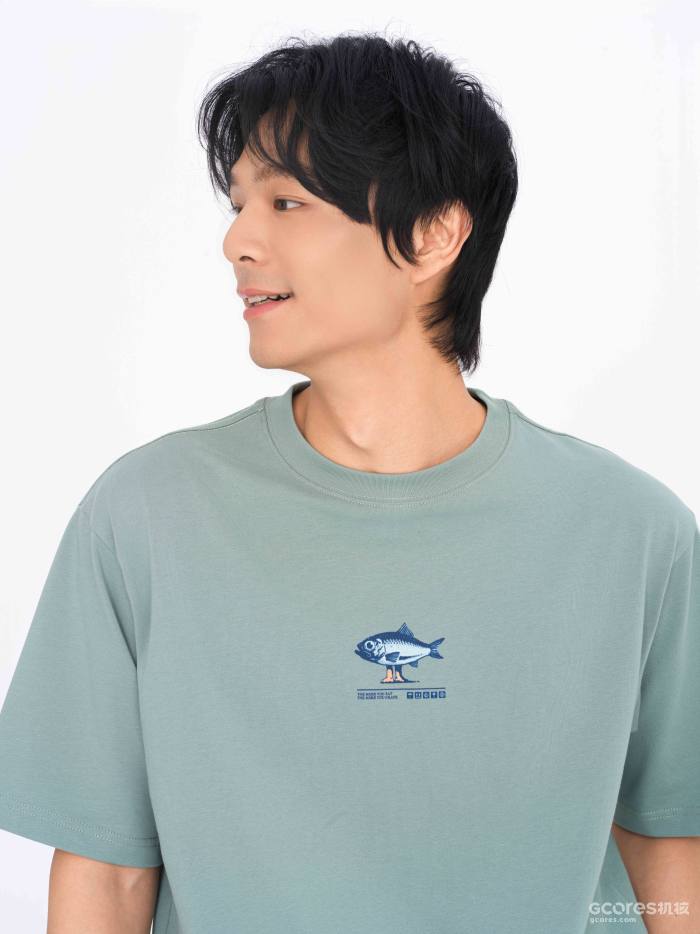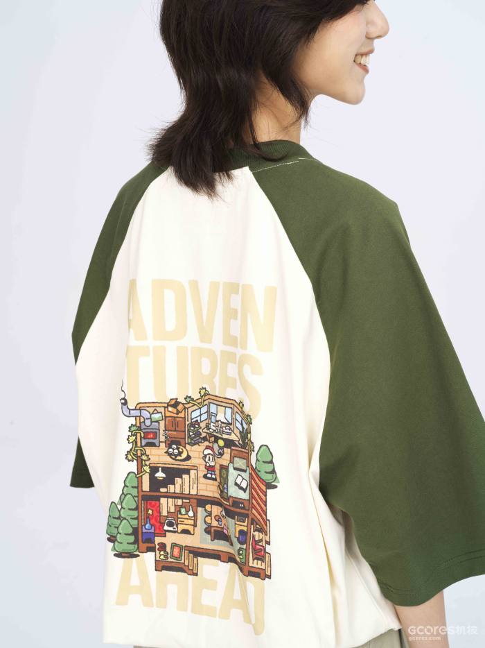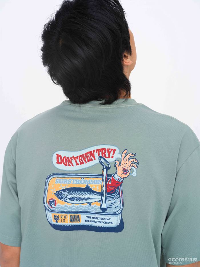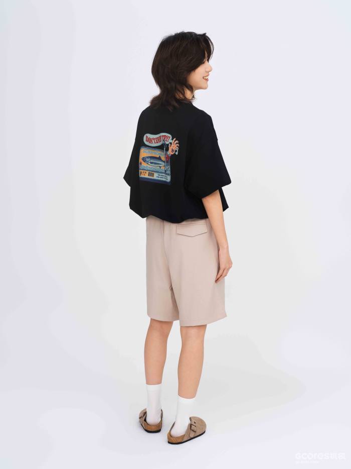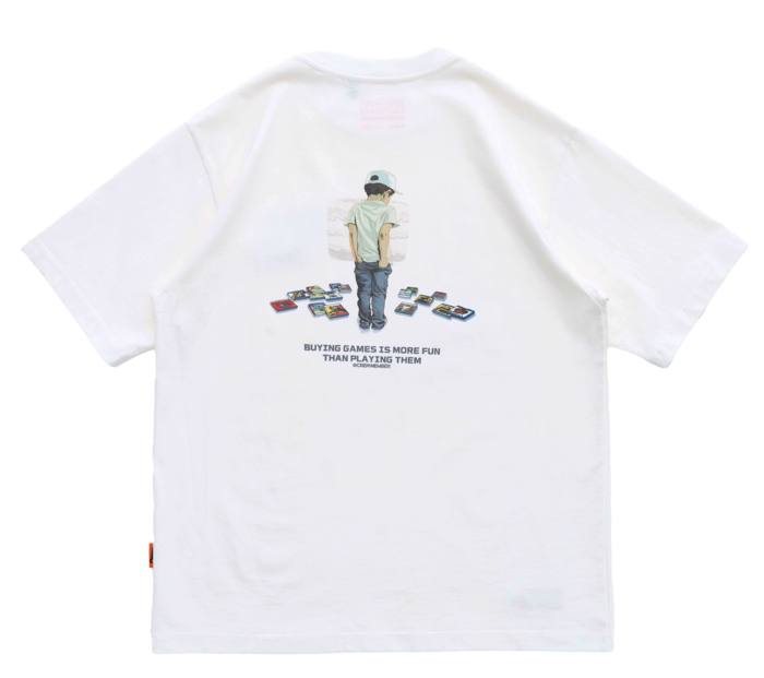 - 后背领口主题印花,不再是平庸的普通印花 T 恤。