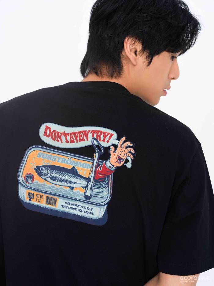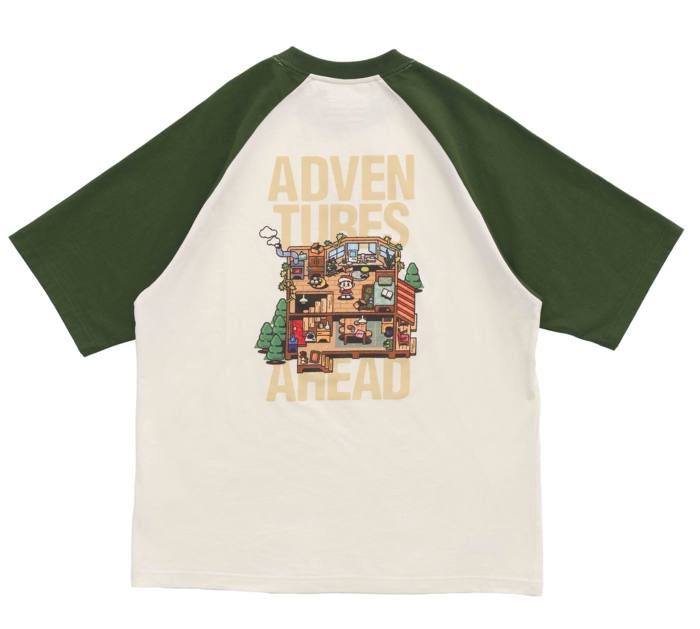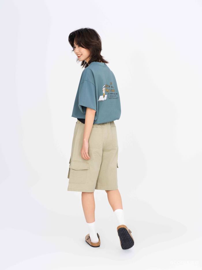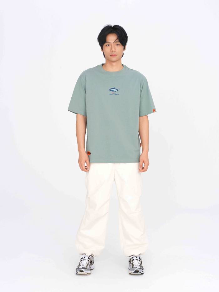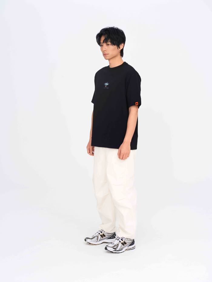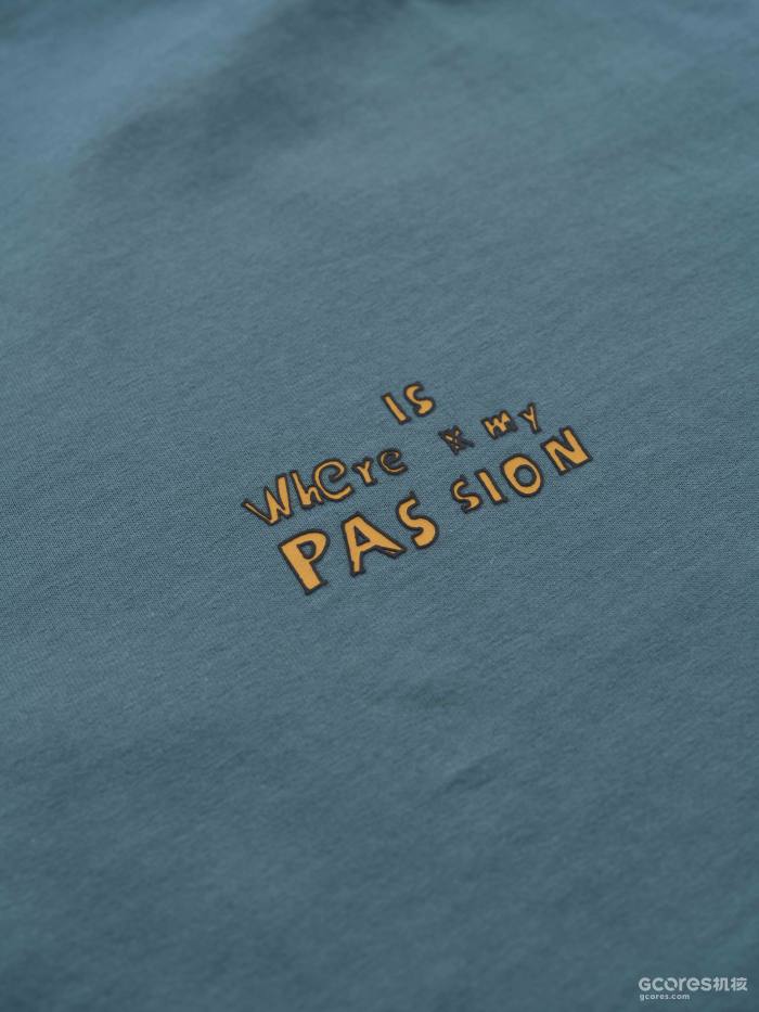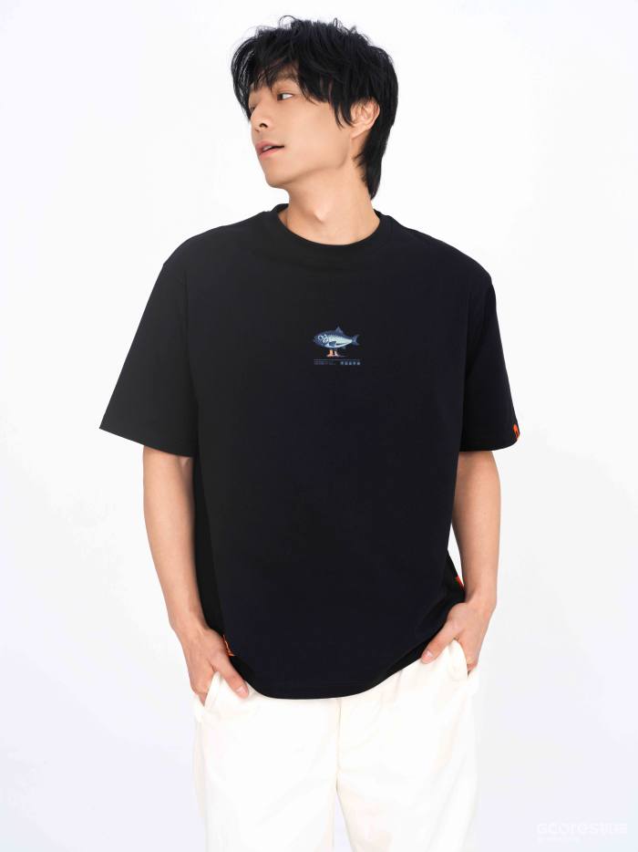 - 后背领口主题印花,不再是平庸的普通印花 T 恤。