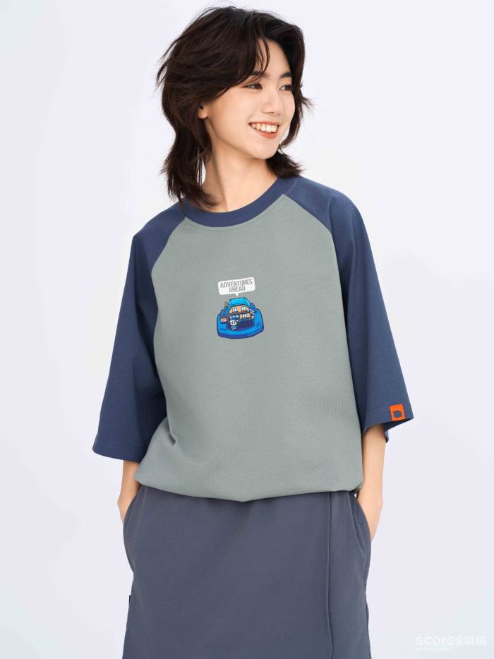 - 撞色插件短袖T 恤,版型更多活动量,色彩更加丰富。