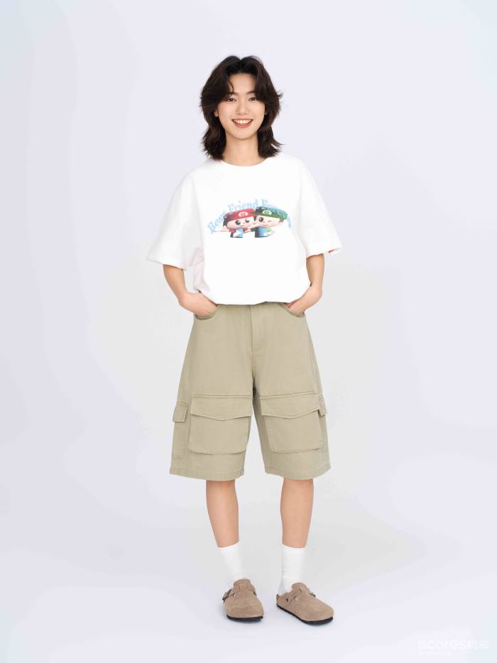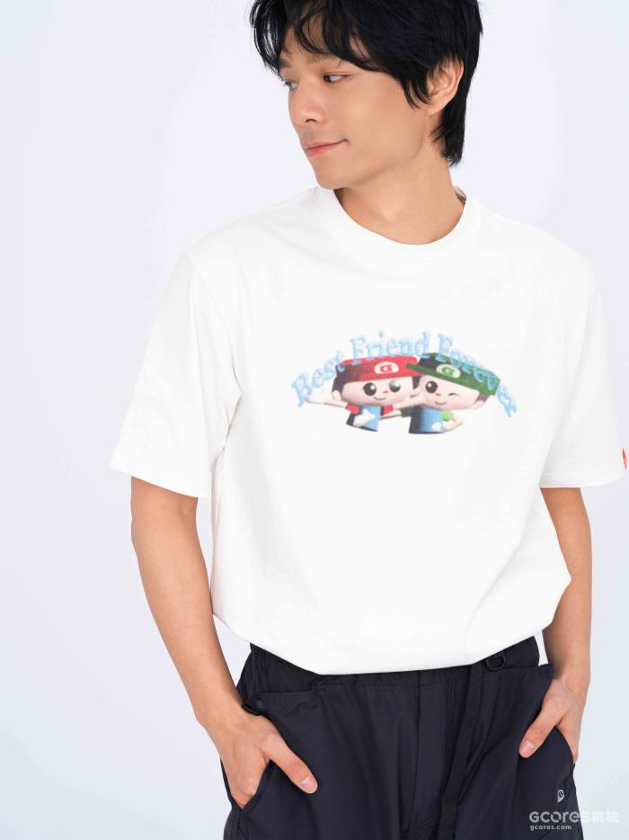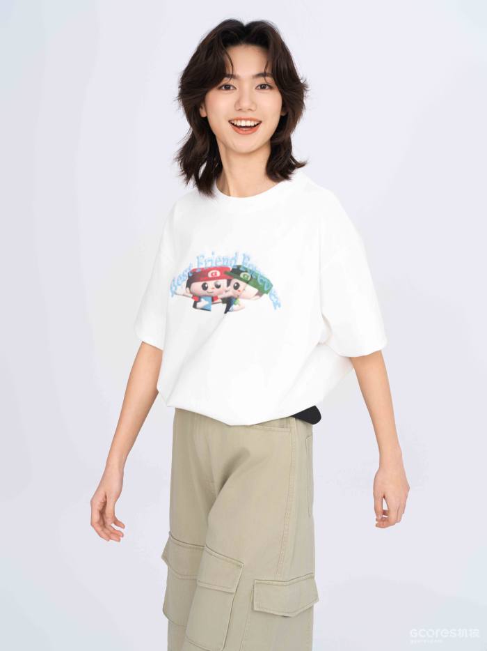 - 胸前采用丝网胶印与立体发泡印花的双重工艺,胶印的锐利色彩与发泡工艺的立体触感叠加,既保留丝网印的视觉张力,又能强化趣味性。