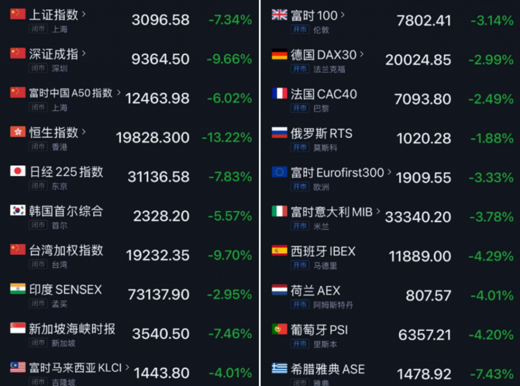 事实上不仅是亚太股市,由于中方4月2日开启了关税反击对美国商品加征34%关税,美国股市在上周四周五、两交易日内已蒸发超过5.4万亿美元,可以说全球金融市场都受到对等关税的影响而暴跌,今天(4月7日)也成为不折不扣的“黑色星期一”。