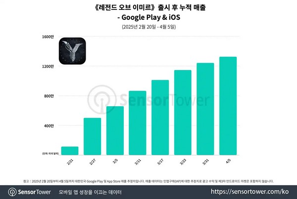 《尤弥尔传奇》以虚幻引擎5为主要卖点,玩法则是典型的天堂like。上线仅5天,游戏登上了韩国地区Goog Play畅销榜。凭借韩国市场的不俗表现,《尤弥尔传奇》入选了Sensor Tower 2月全球手游收入增长TOP 10。