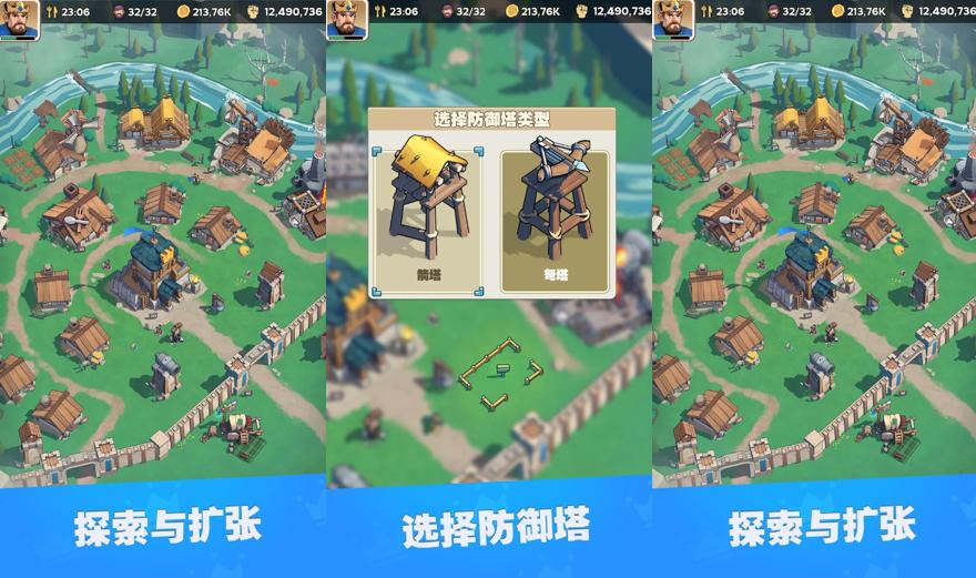 比如,《Kingshot》采用能以更低成本筛选到高质量用户的欧美卡通画风;或是前期用轻度放置塔防策略玩法当作拉新入口:玩家只需要单手操控国王移动,敌方进入范围即可自动攻击。而游戏后期的核心玩法,依然是资源争夺、基地建造、领土扩张、军事对抗等更重度的4X要素。