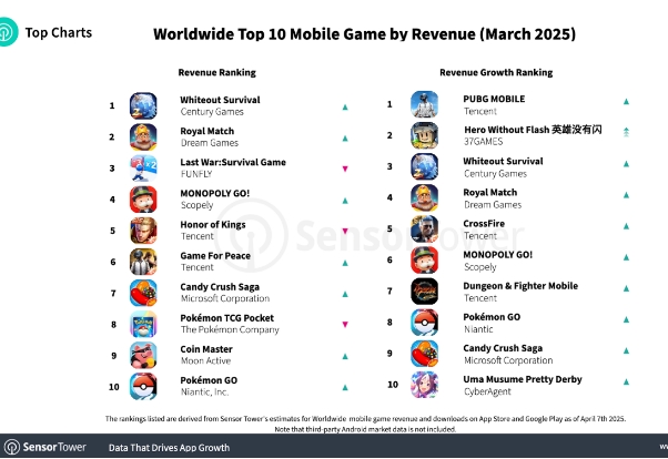 3月全球手游收入与下载量TOP10:《Whiteout Survival》登顶全球手游收入榜 | 游戏观点 | 游戏报道