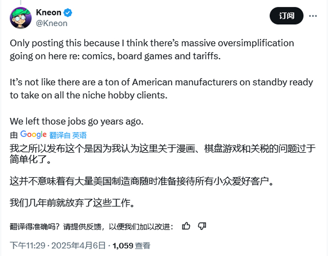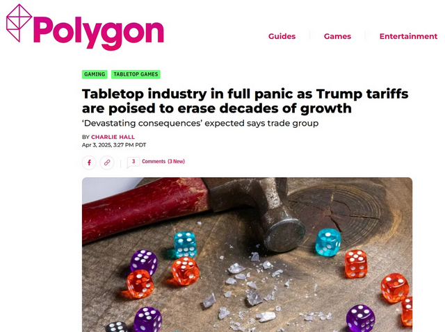 而除了Price Johnson遇到了类似的难题,根据海外知名桌游网站BoardGameGeek(简称BGG)的报道,他们写道:“关于美国政府2025年4月2日宣布的关税政策,我已收到超过150家出版商的反馈,受访者普遍情绪几乎都是绝望、沮丧、困惑与愤怒的混合体”。