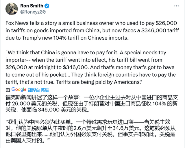 此次特朗普政府大张旗鼓,甚至在其大本营、在特朗普增税导致美国股市冲进下水道的同一时间,不报道经济新闻而是DEI内容转移视线的福克斯新闻网,都在最近请来了美国本土的小型企业主,讲述新关税对于自己生意以及美国人消费的冲击。这个时候很多人才意识到美国增收的关税最终是由美国消费者承担的。