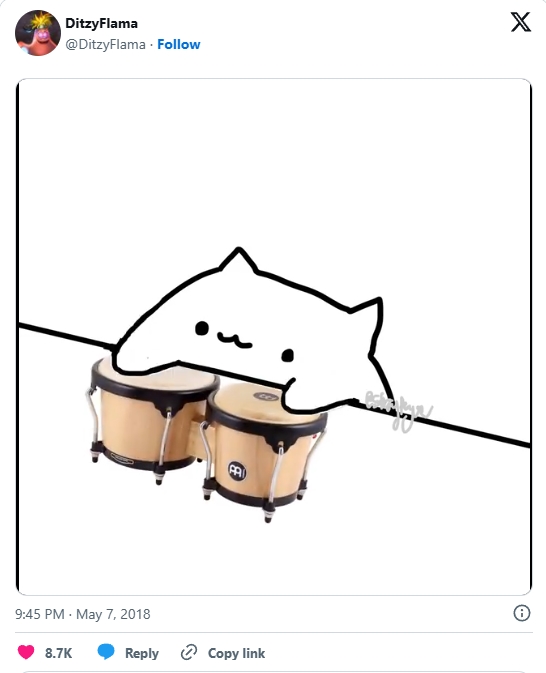 《Bongo Cat》里这只可爱小猫的形象事实上并不是软件开发者Marcel Zurawka的原创,而是由一名推特用户在2018年创作的“小猫敲鼓”小动画。虽是这名推特用户的无心制作,但由于这只敲鼓小猫实在过于呆萌可爱,随后成为风靡互联网经久不衰的萌梗之一。而通过借道网络热梗的方式,《Bongo Cat》让自身获得了不少关注,也“自动”获得了不少和玩家的亲和力。